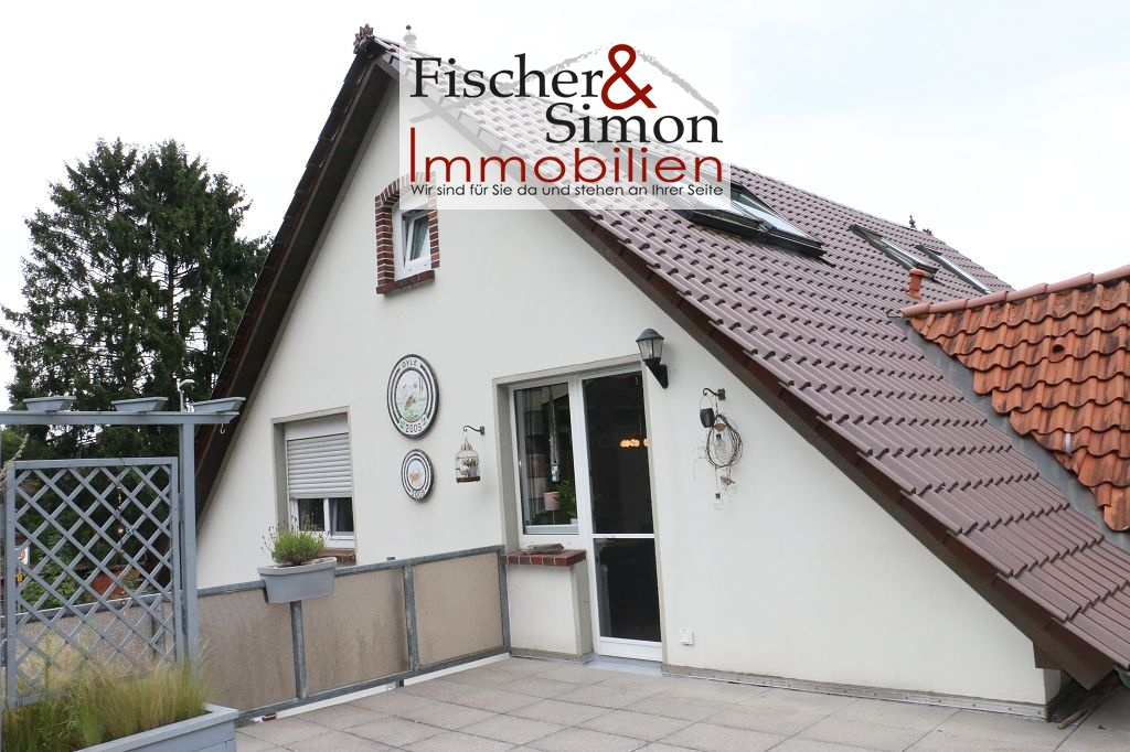 OG: Flur, Küche, Speisekammer, 2 Schlafzimmer, gr. Wohn-/ Esszimmer mit Zugang zur großen Dachterrasse, sep. Flur mit Raumspartreppe, die auf den wohnlich ausgebauten Spitzboden mit 2 Räumen und einem Bad führt