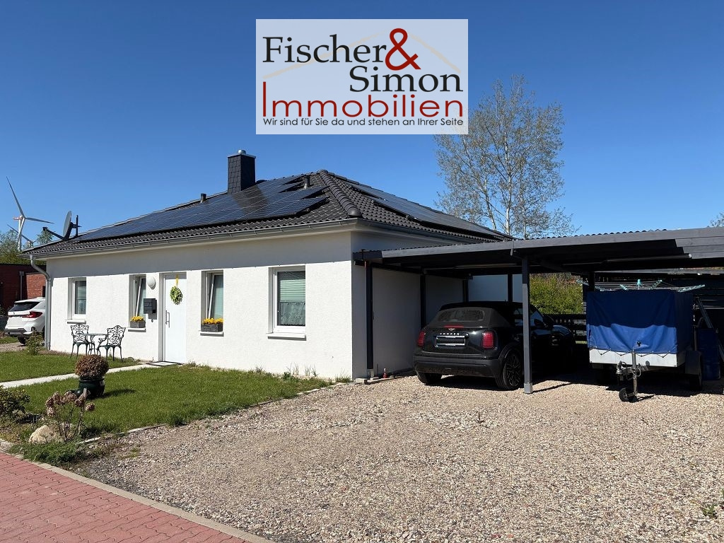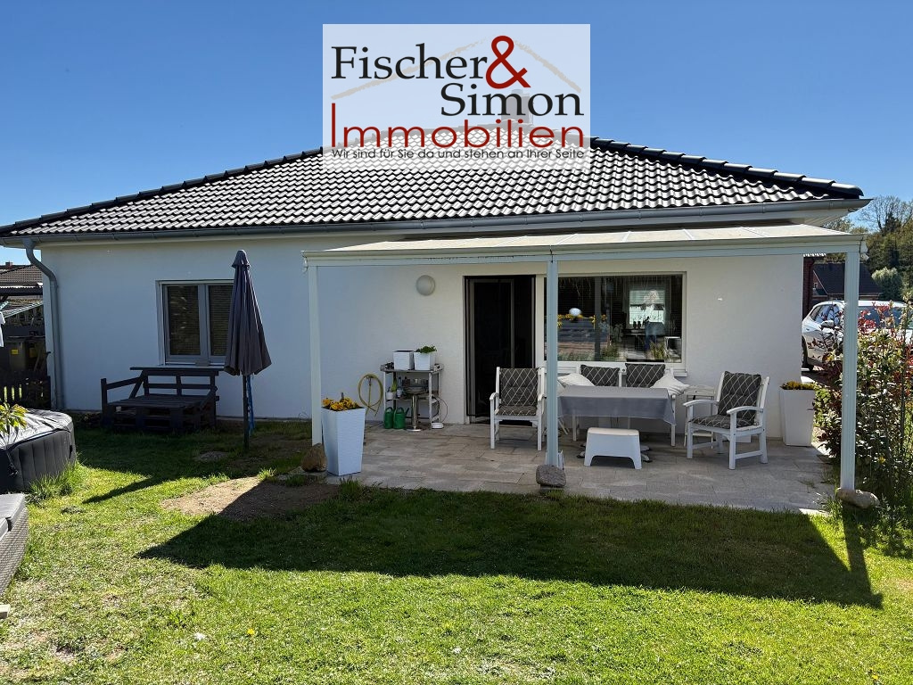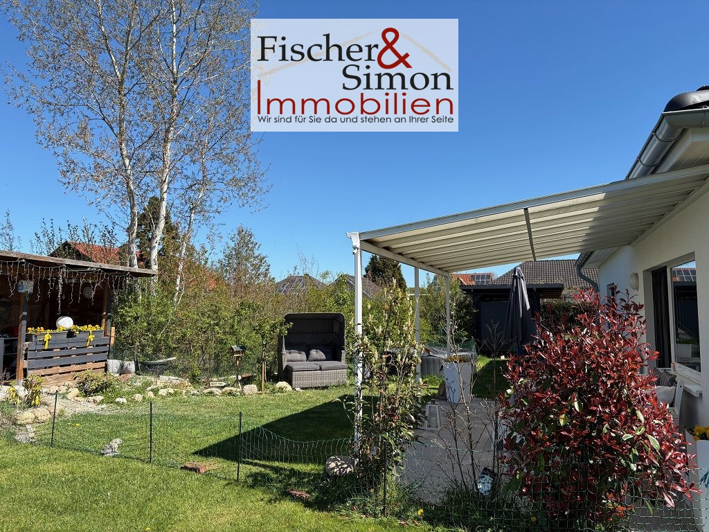 Moderner, massiv errichteter Bungalow der hiesigen Firma böSteinhaus aus dem Jahr 2023 mit einer Wohnfläche von ca. 90 m² auf einer Ebene. Die durchdachte, ebenerdige Raumaufteilung bietet komfortables Wohnen ohne Treppen und eignet sich ideal für Paare, Singles oder altersgerechtes Wohnen. Der helle, offene Wohn- und Essbereich bildet das Herzstück des Hauses und überzeugt durch eine angenehme Wohnatmosphäre. Von hier haben Sie einen direkten Zugang zur überdachten Terrasse und dem schönen Garten, der ausreichend Platz zur Erholung und individuellen Gestaltung bietet. Eine Photovoltaikanlage ist vorhanden, wird jedoch separat betrachtet.